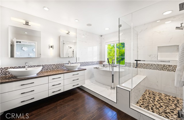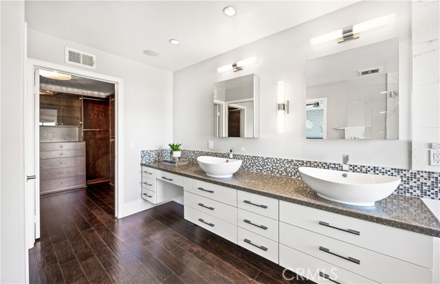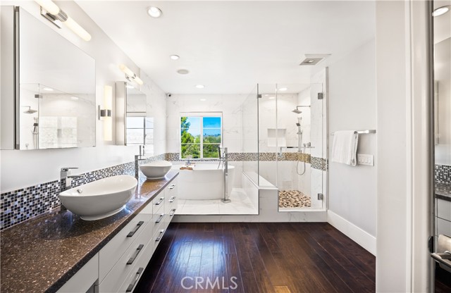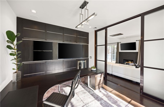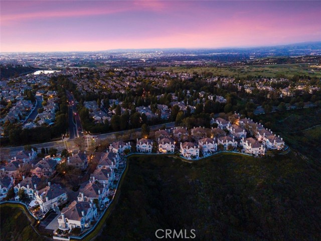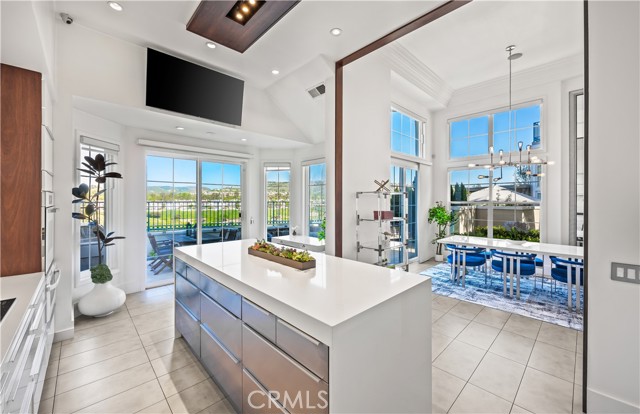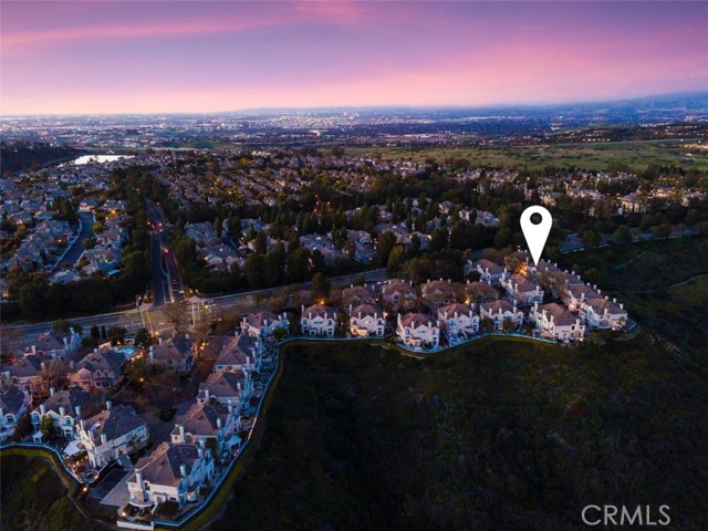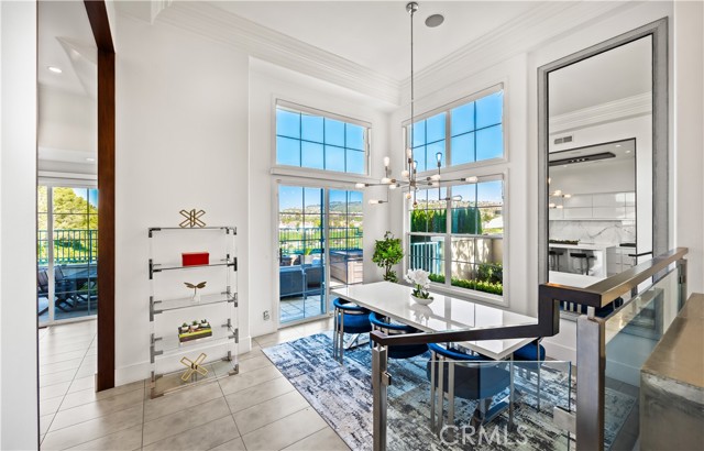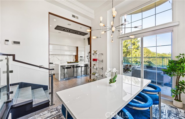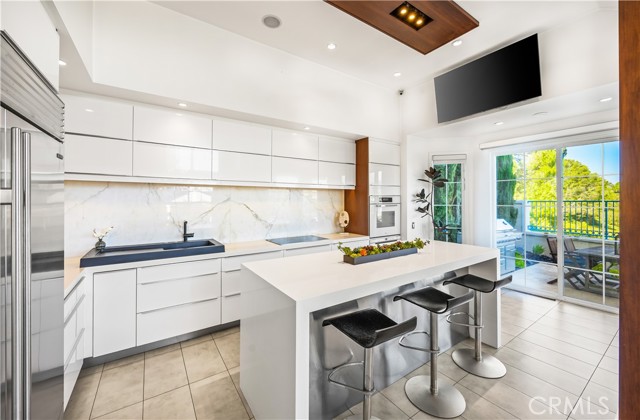Located within the beautiful French-inspired gated community of Newport Ridge Vistas, this sophisticated townhome has been completely reimagined, offering a refined luxury lifestyle with elevated finishes including Italian Porcelanosa stone and tile in all bathrooms, custom light fixtures, architectural lighting, and a Sonos sound system inside and out. The home is sun-drenched, light and airy, with soaring ceilings creating an immediate sense of openness upon entry. The exceptionally large, double-sized kitchen—a significant upgrade over the original half, L-shaped kitchens in the community—is a gourmet showpiece featuring 16-foot ceilings and tranquil canyon views. Designed for everyday living and entertaining, it offers high-gloss flat-front cabinetry, white marble countertops and backsplash, a built-in Miele espresso machine, Miele wall oven, Fisher & Paykel dishwashers, Sub-Zero refrigerator, and a Miele induction cooktop. The kitchen and dining area flow seamlessly to a private rear-yard oasis framed by mature hedge trees for enhanced privacy, complete with a water feature, gas BBQ, and hot tub overlooking the canyon. Custom Bali privacy blinds in the kitchen and dining area allow natural light while maintaining privacy. A separate main-level office, divided by custom sliding glass doors, provides an ideal work-from-home setup. Upstairs, the primary retreat features a gas fireplace, private balcony with canyon views, dual closets, and Hunter Douglas custom motorized blinds with sheer and blackout options. The spa-like primary bath includes marble wall tile, soaking tub, walk-in shower, and dual-sink cabinetry with seated vanity. Two additional bedrooms and a full bath complete the floor plan. The home is further enhanced by a thoughtfully designed laundry center in the garage with premium washer and dryer, adjoining cabinetry, utility sink, and extensive custom built-in garage storage—an upgrade from the original layout where laundry was positioned near the garage entry. Security cameras and numerous designer upgrades complete this exceptional offering. Newport Ridge Vistas offers a large greenbelt, heated pool and spa, and proximity to shopping, dining, Newport Coast Elementary, and all Newport Ridge amenities including pools, spas, sport courts, parks, and playgrounds.